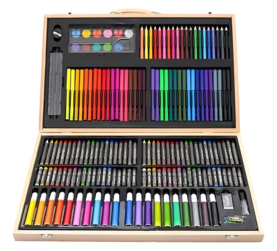Set De Arte Profesional 180 Piezas Lápices Con Maletín Madera